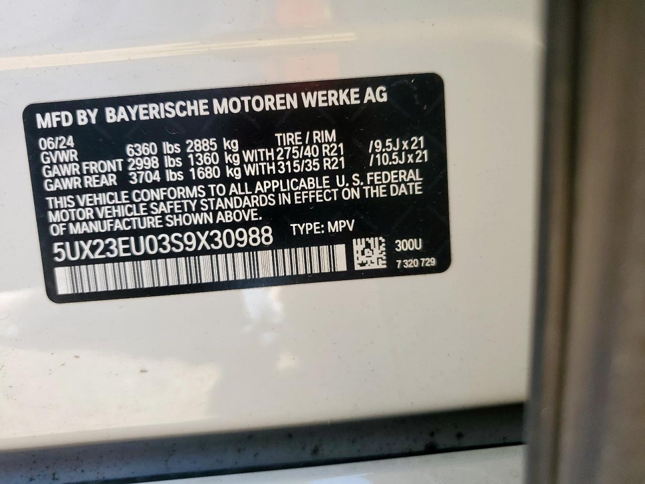 - ВИН: 5UX23EU03S9******