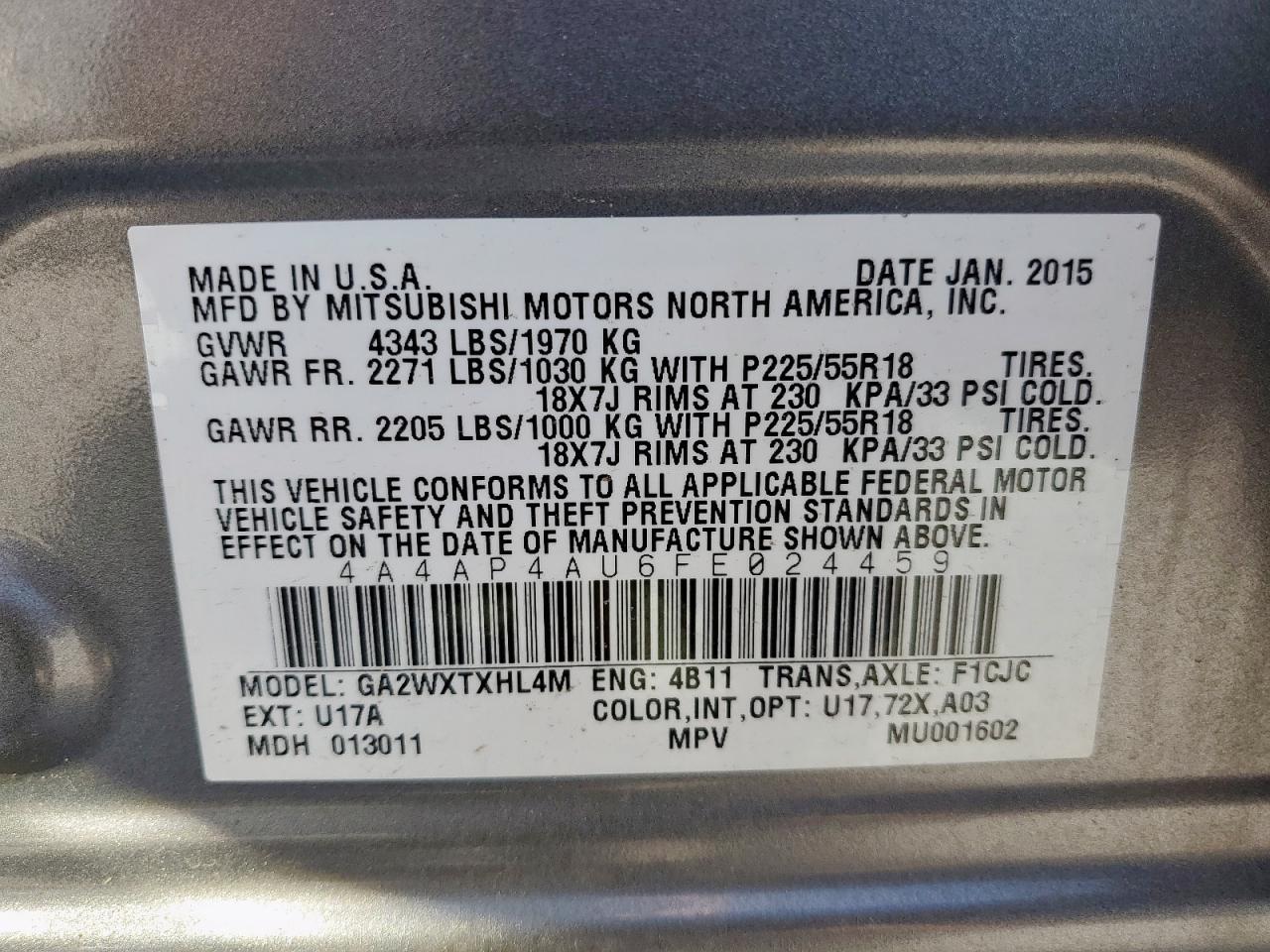 - ВИН: 4A4AP4AU6FE******