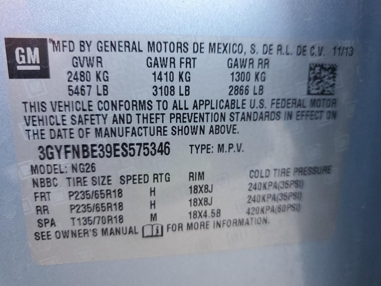- ВИН: 3GYFNBE39ES******