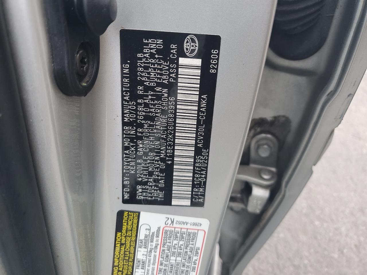 - ВИН: 4T1BE32K26U******