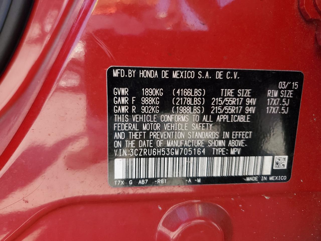 - ВИН: 3CZRU6H53GM******