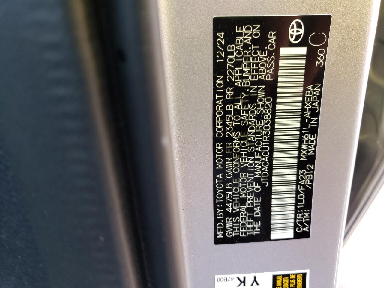 - ВИН: JTDACACU1R3******