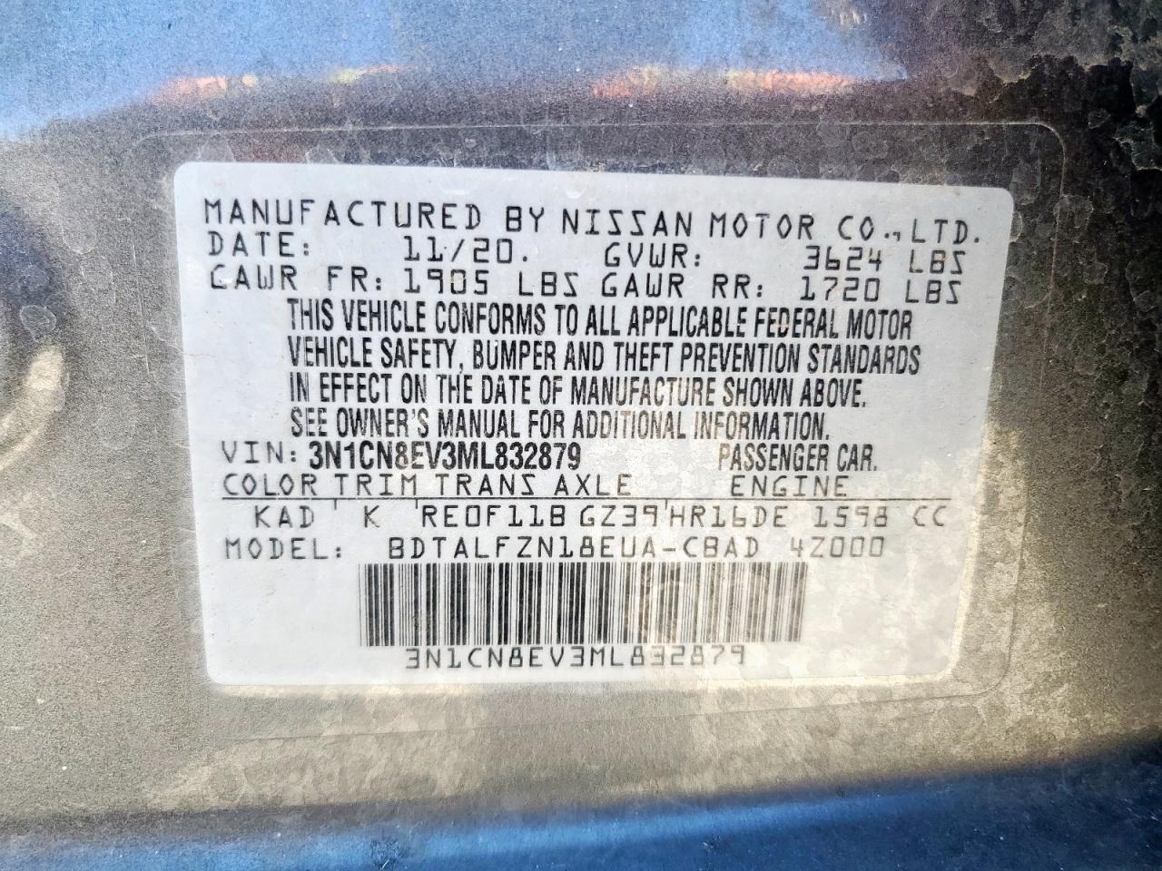 - ВИН: 3N1CN8EV3ML******