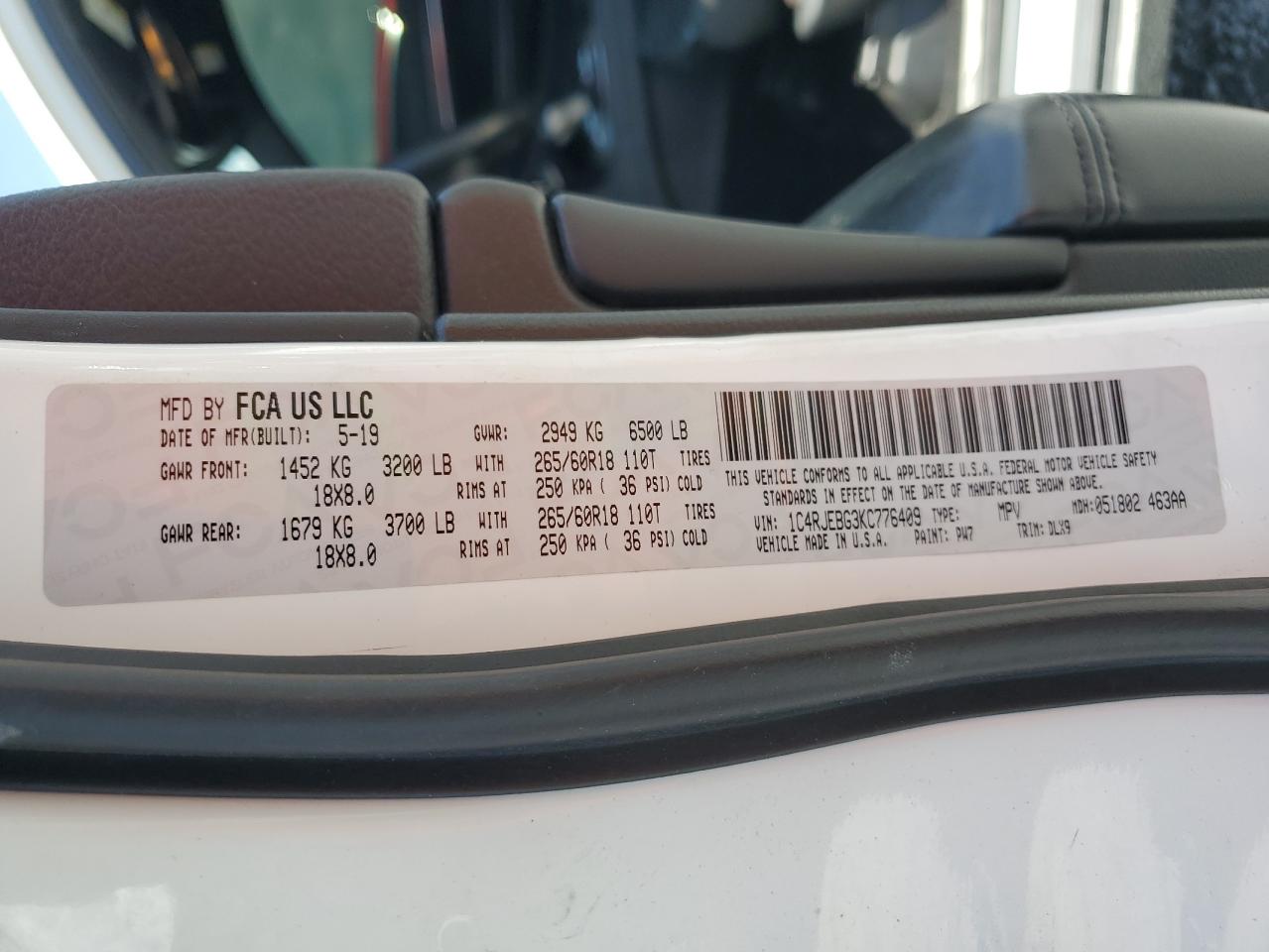 - ВИН: 1C4RJEBG3KC******