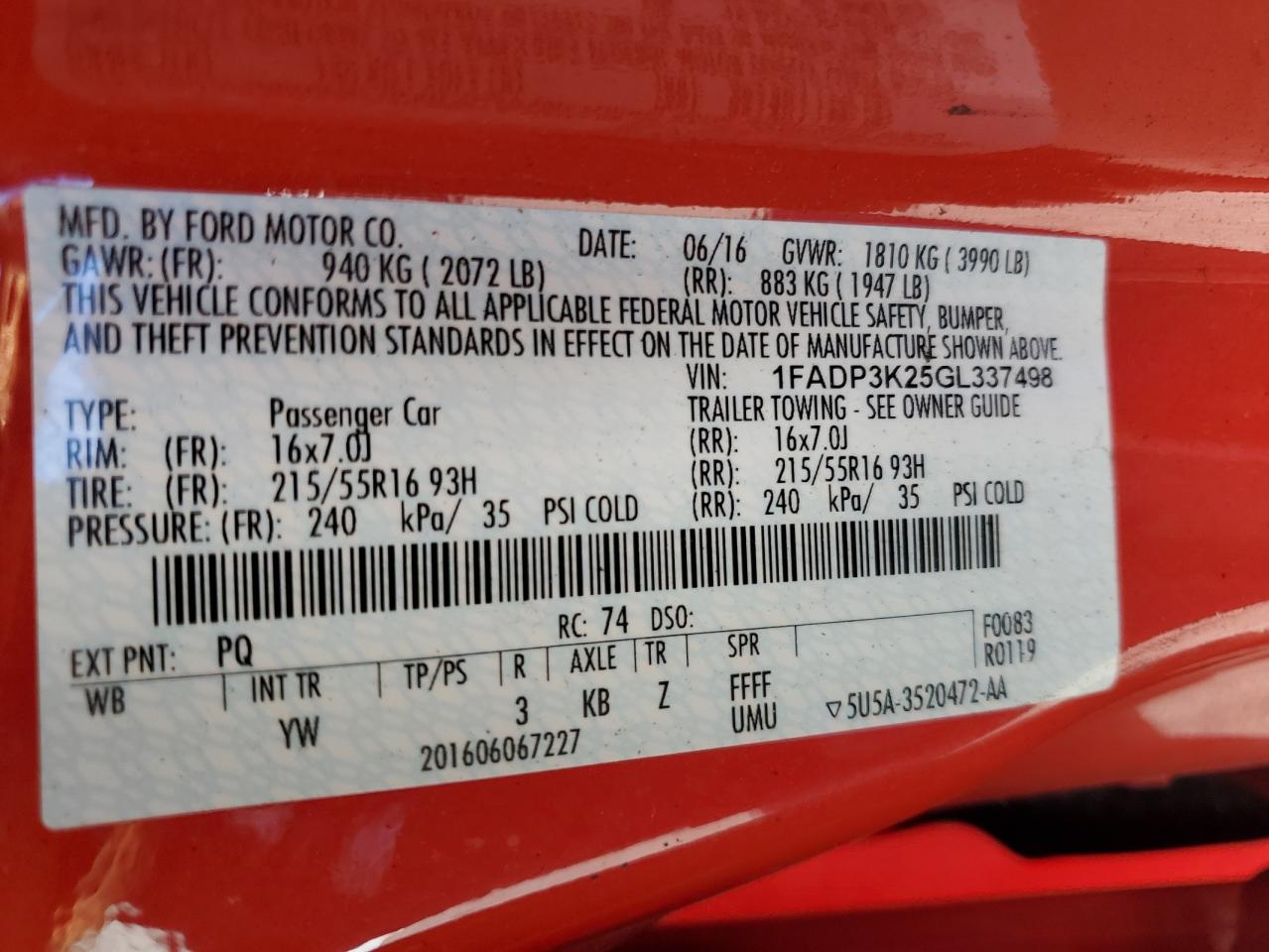 - ВИН: 1FADP3K25GL******