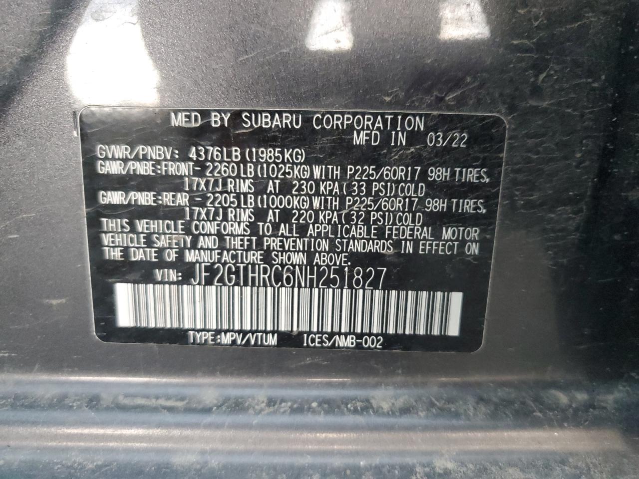 - ВИН: JF2GTHRC6NH******
