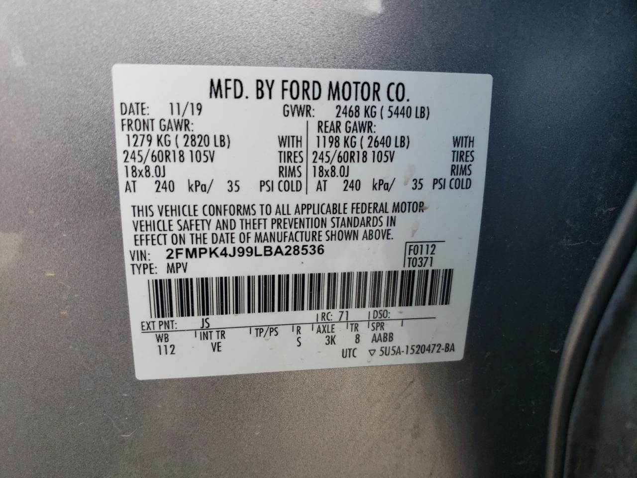 - ВИН: 2FMPK4J99LB******