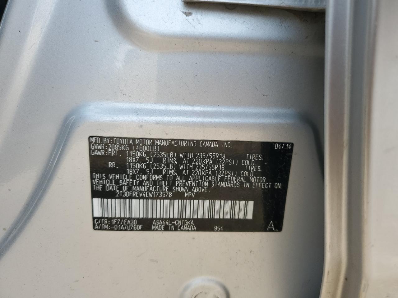 - ВИН: 2T3DFREV4EW******