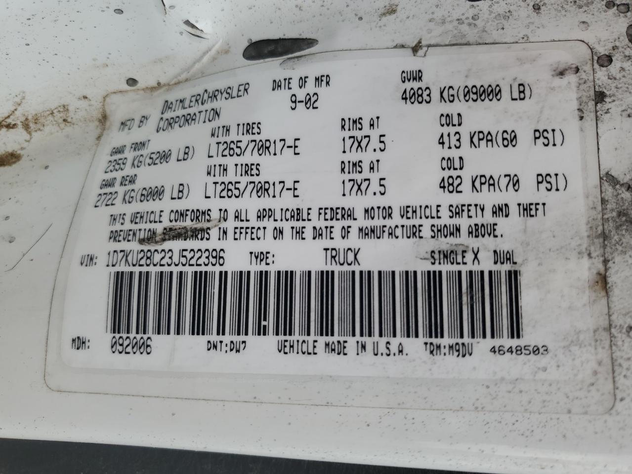 - ВИН: 1D7KU28C23J******