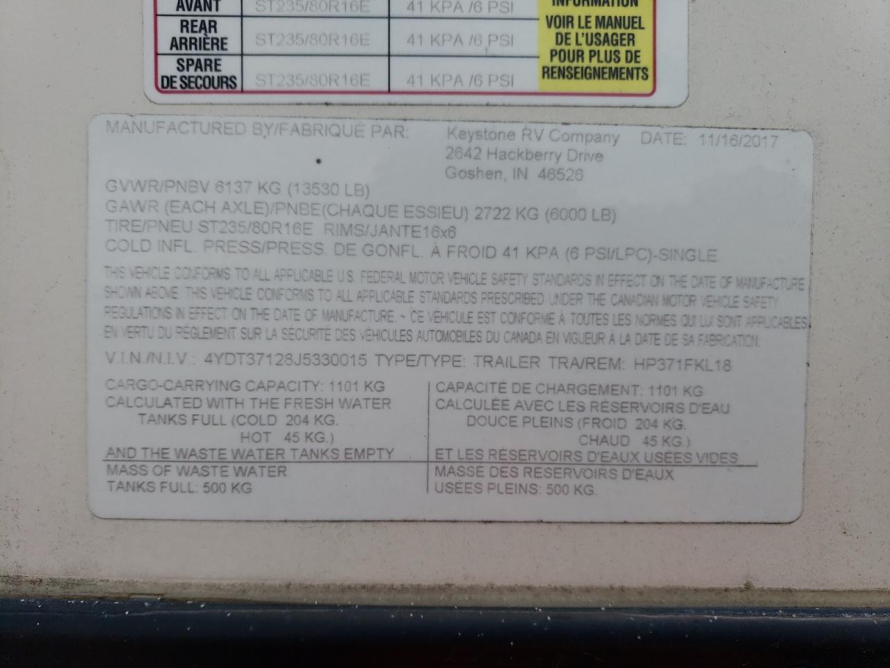 2018 KEYSTONE TRAILER из США