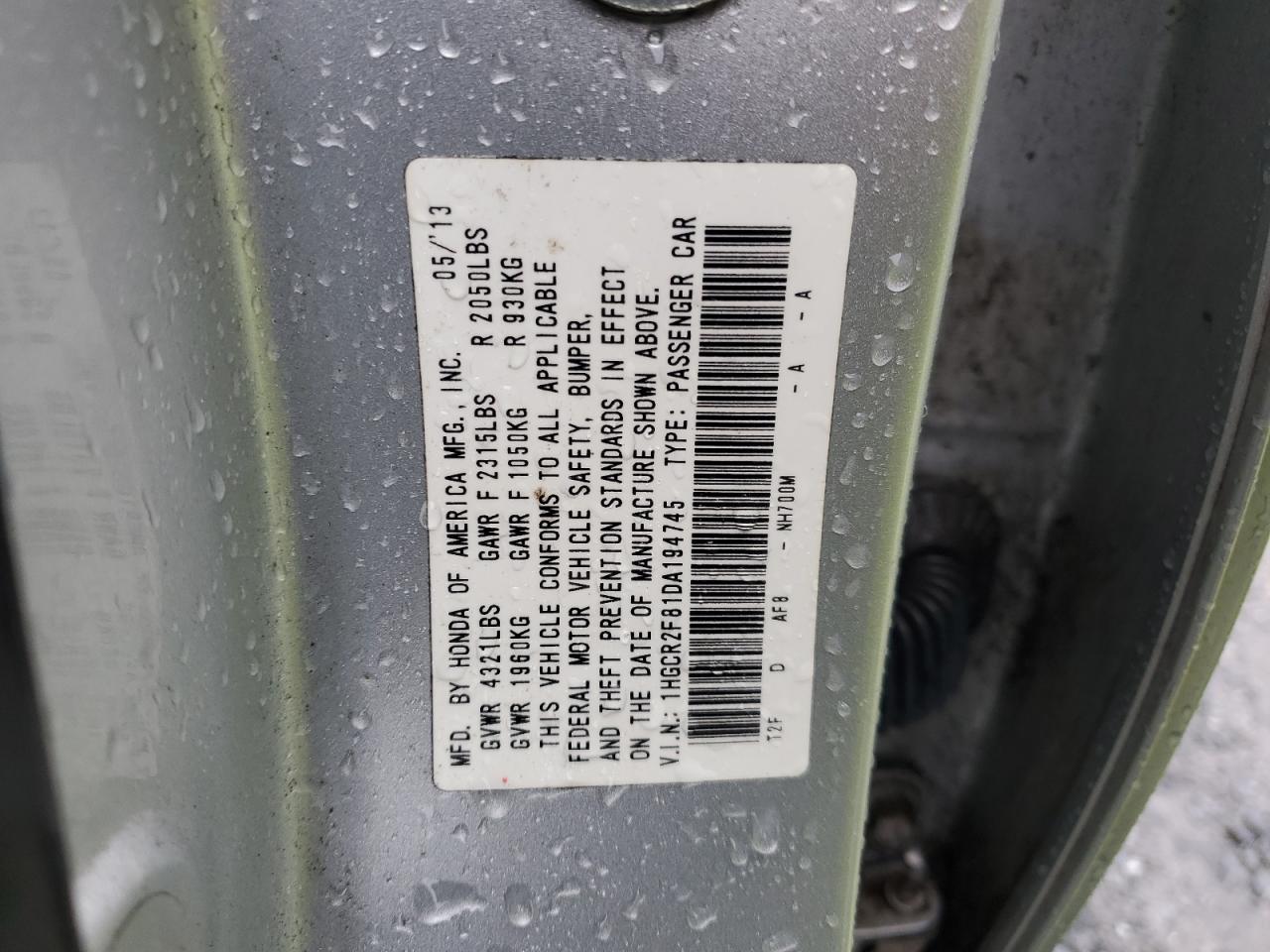 - ВИН: 1HGCR2F81DA******