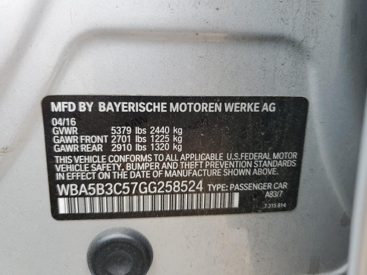- ВИН: WBA5B3C57GG******