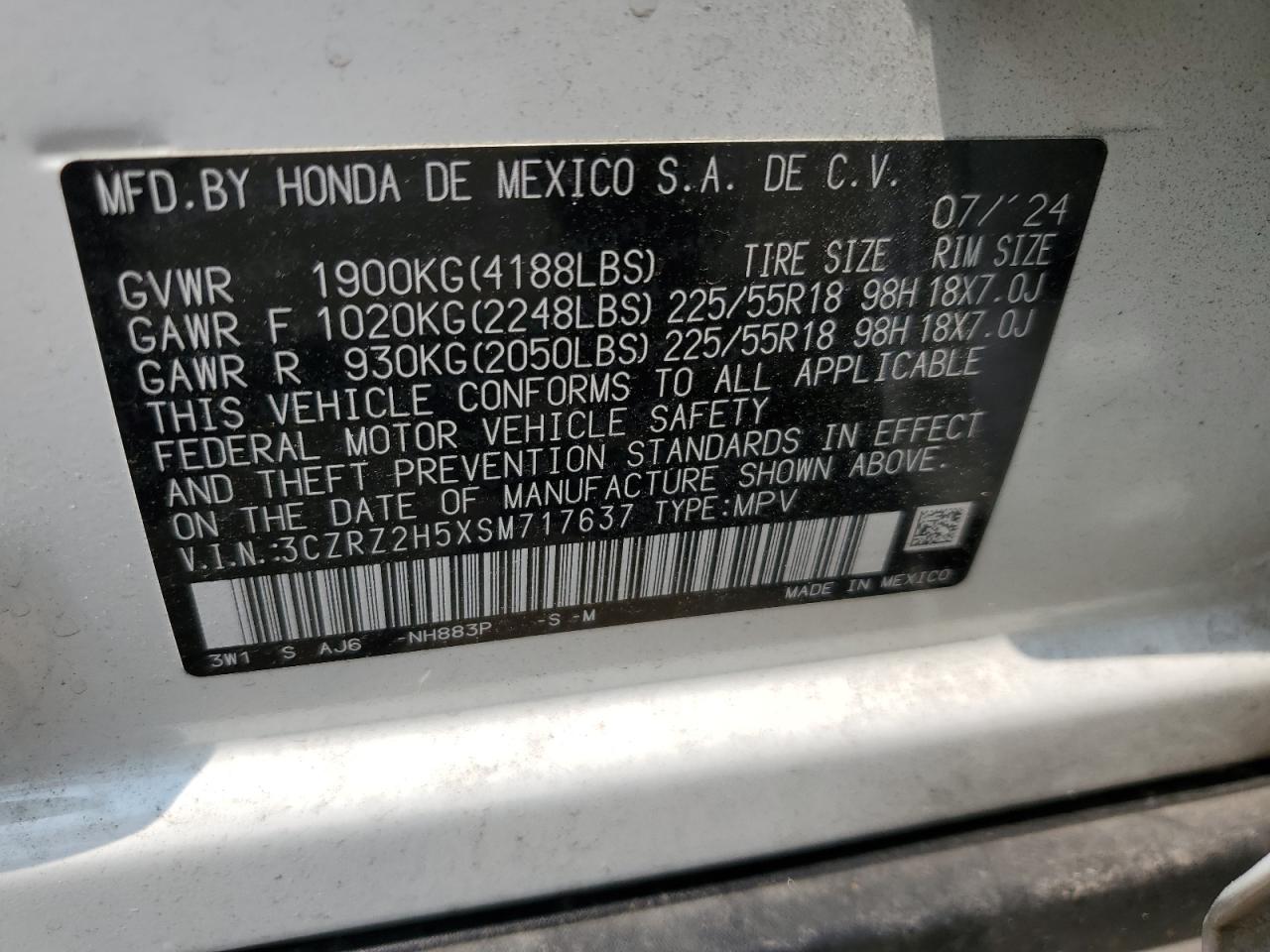 2025 HONDA HR-V SPORT из США