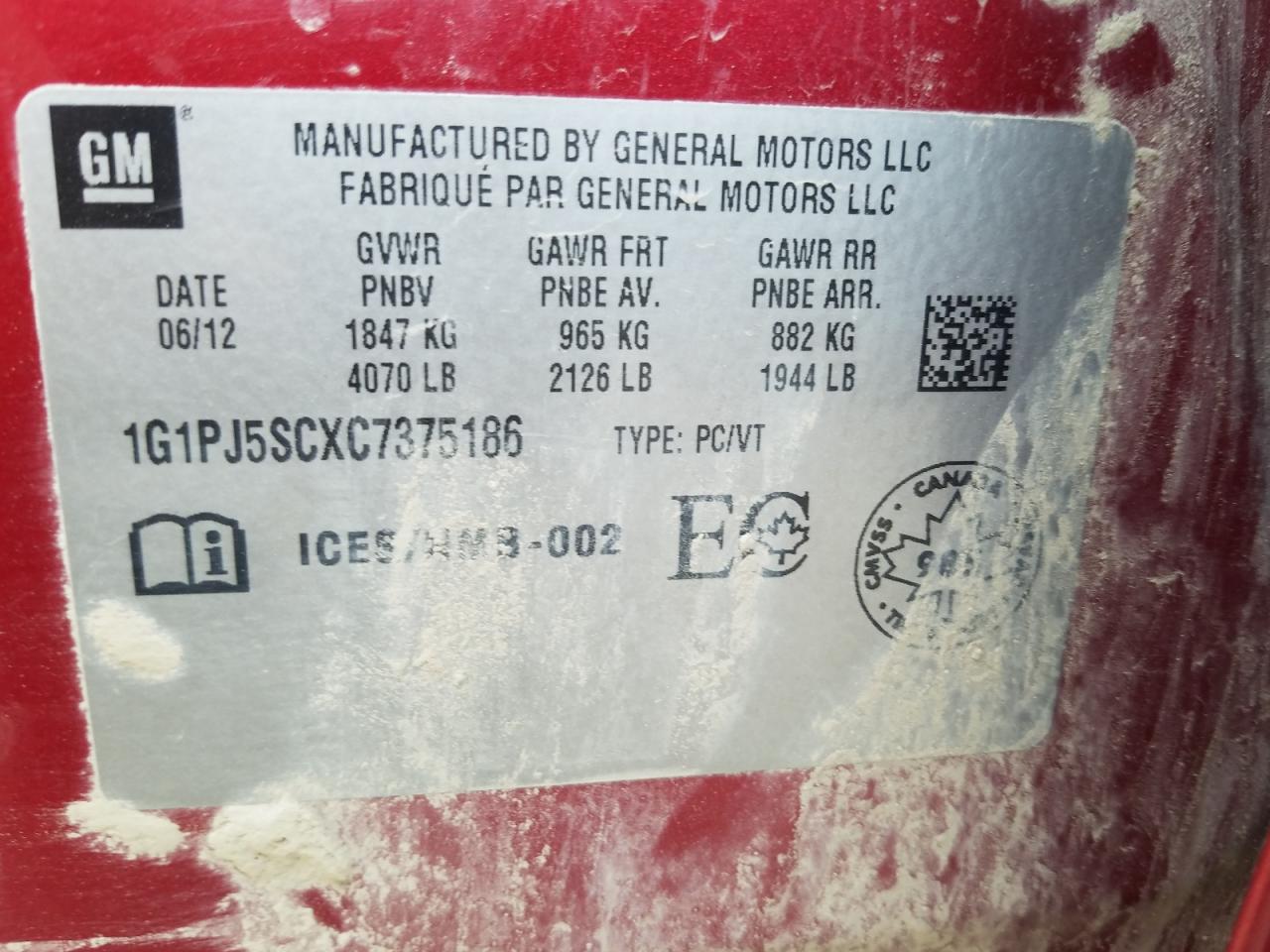 - ВИН: 1G1PJ5SCXC7******