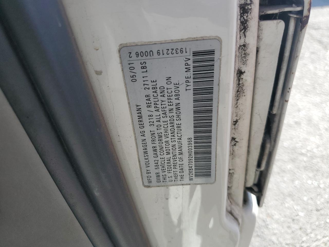 - ВИН: WV2KB47092H******
