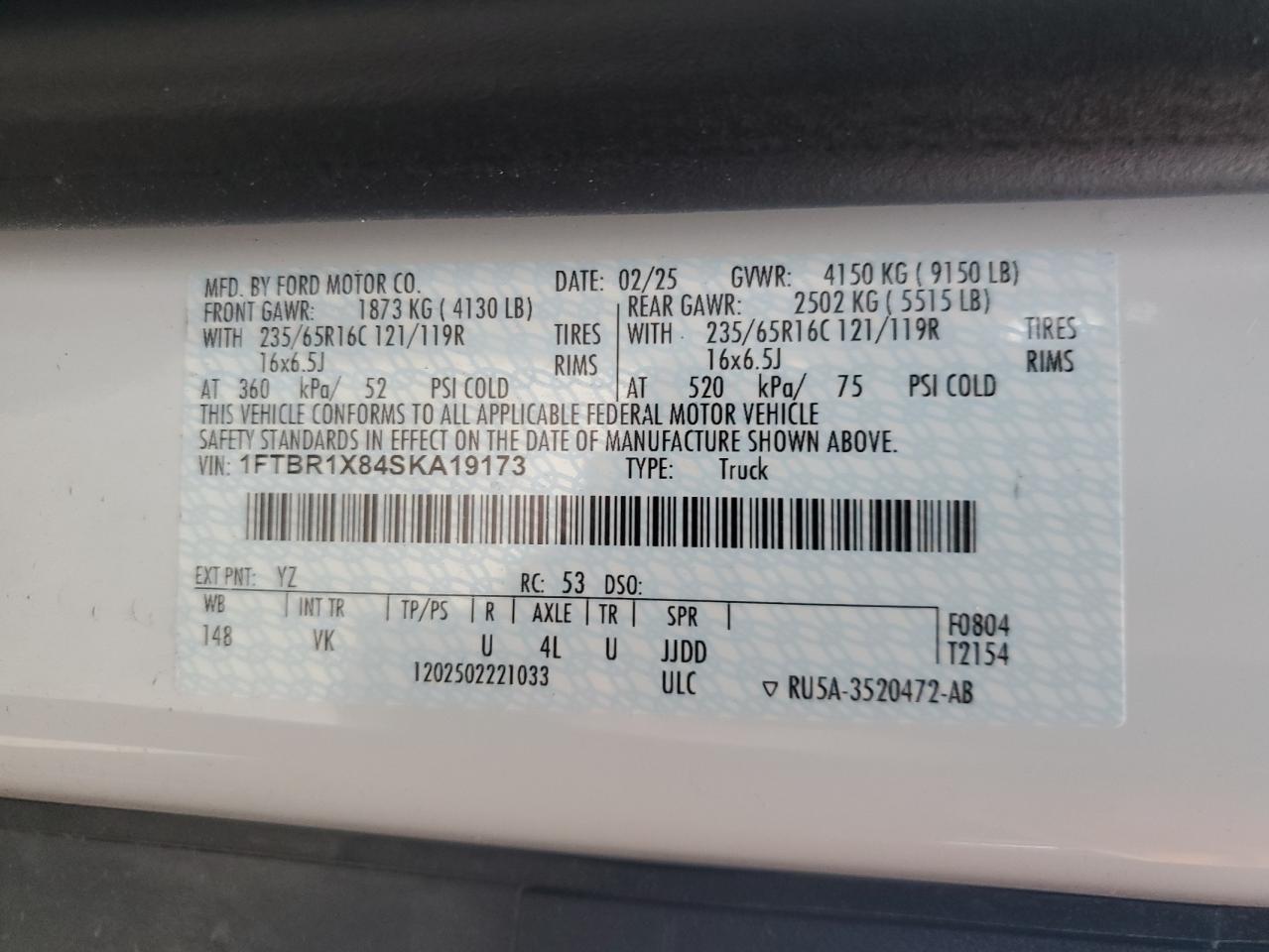- ВИН: 1FTBR1X84SK******