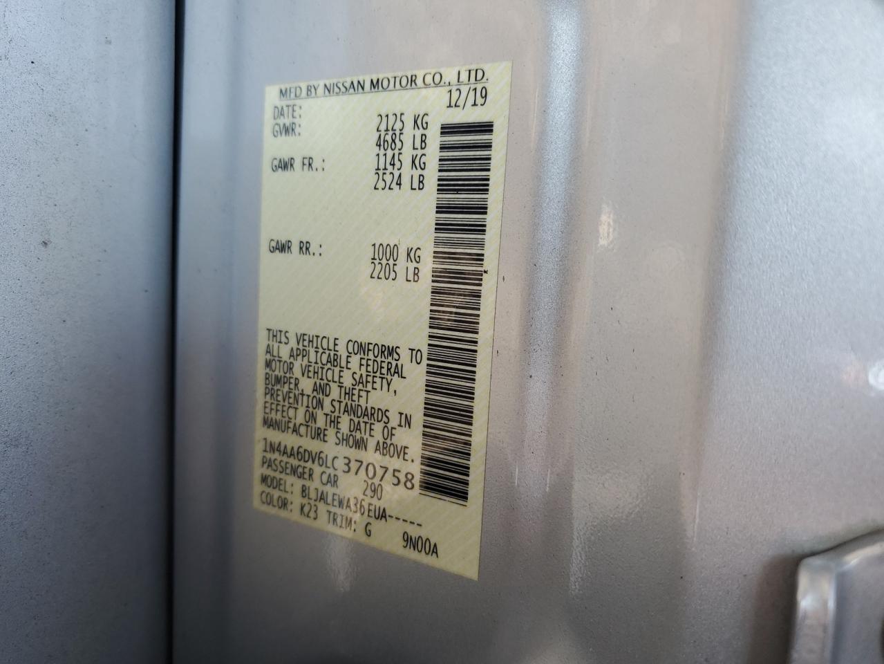 - ВИН: 1N4AA6DV6LC******