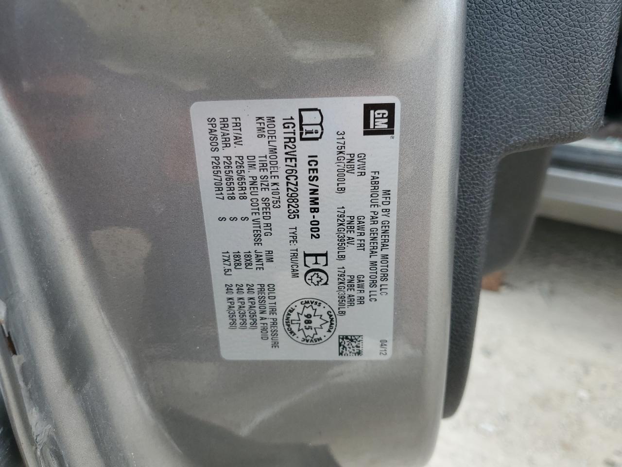 - ВИН: 1GTR2VE76CZ******