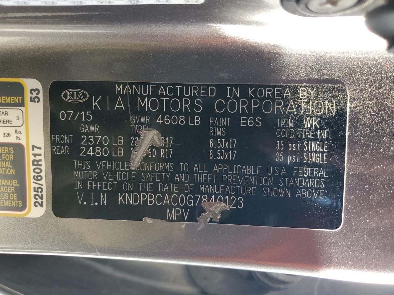- ВИН: KNDPBCAC0G7******