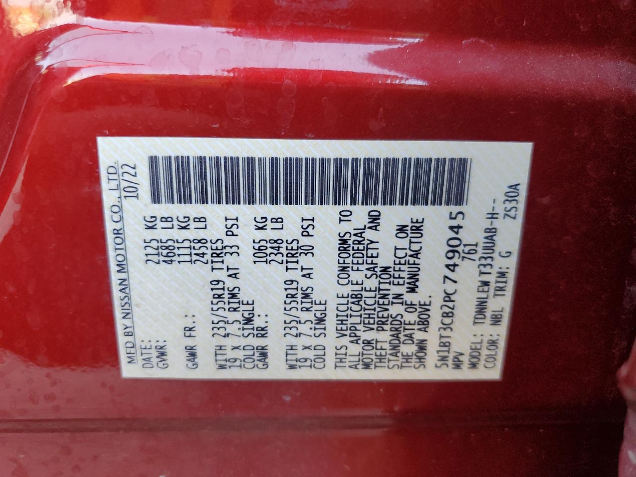 - ВИН: 5N1BT3CB2PC******