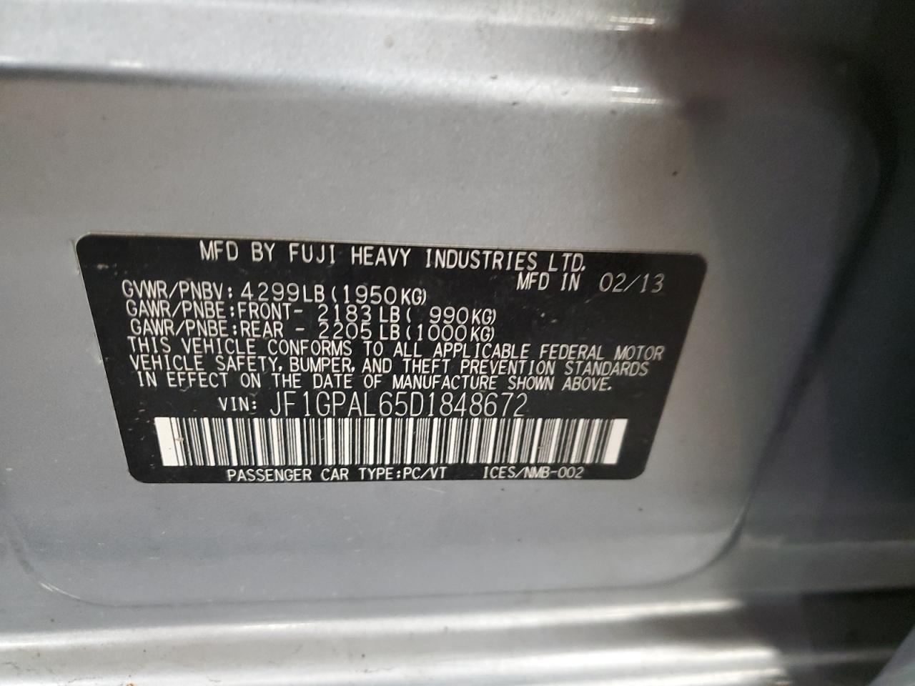 - ВИН: JF1GPAL65D1******