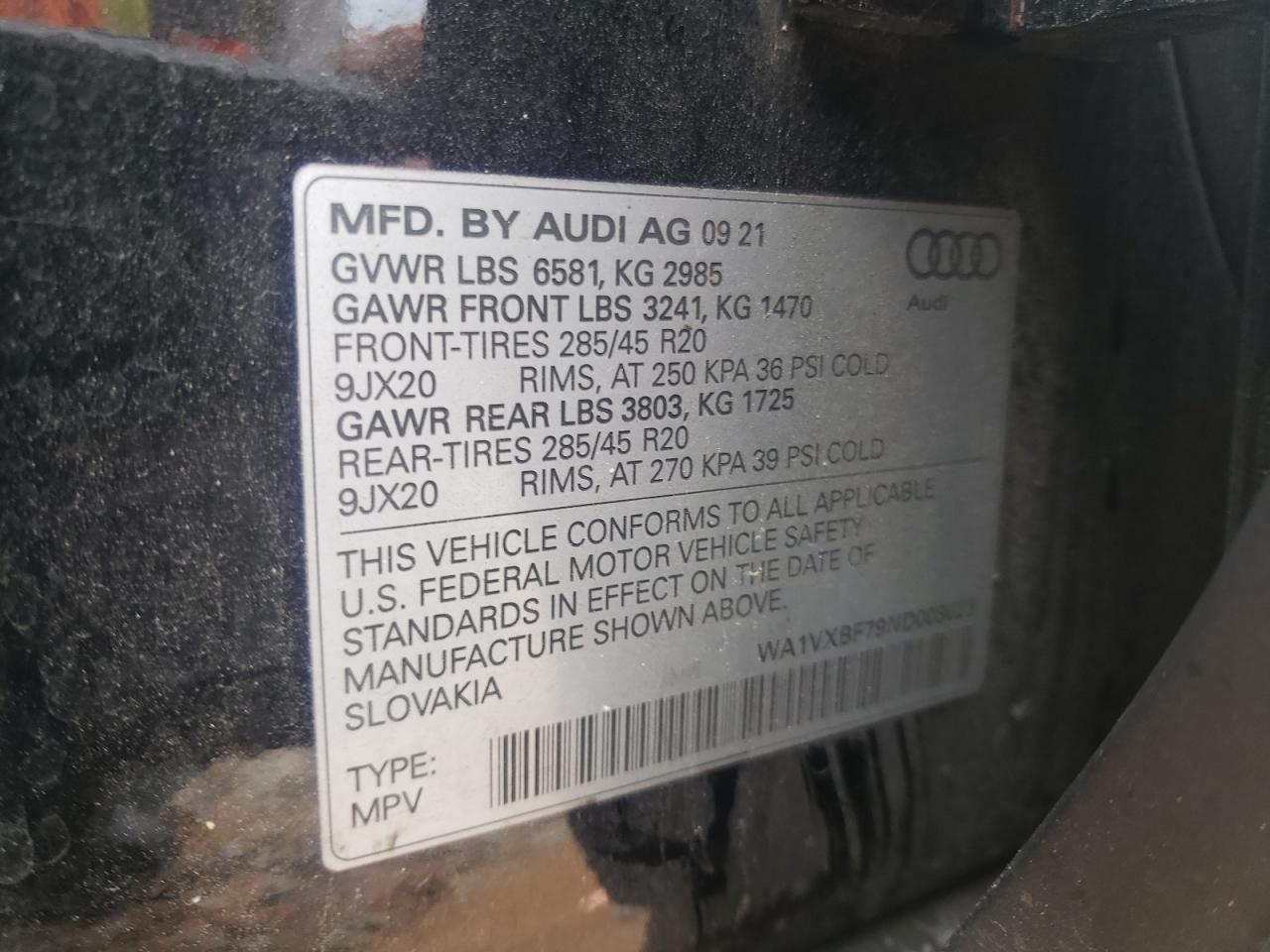 - ВИН: WA1VXBF79ND******