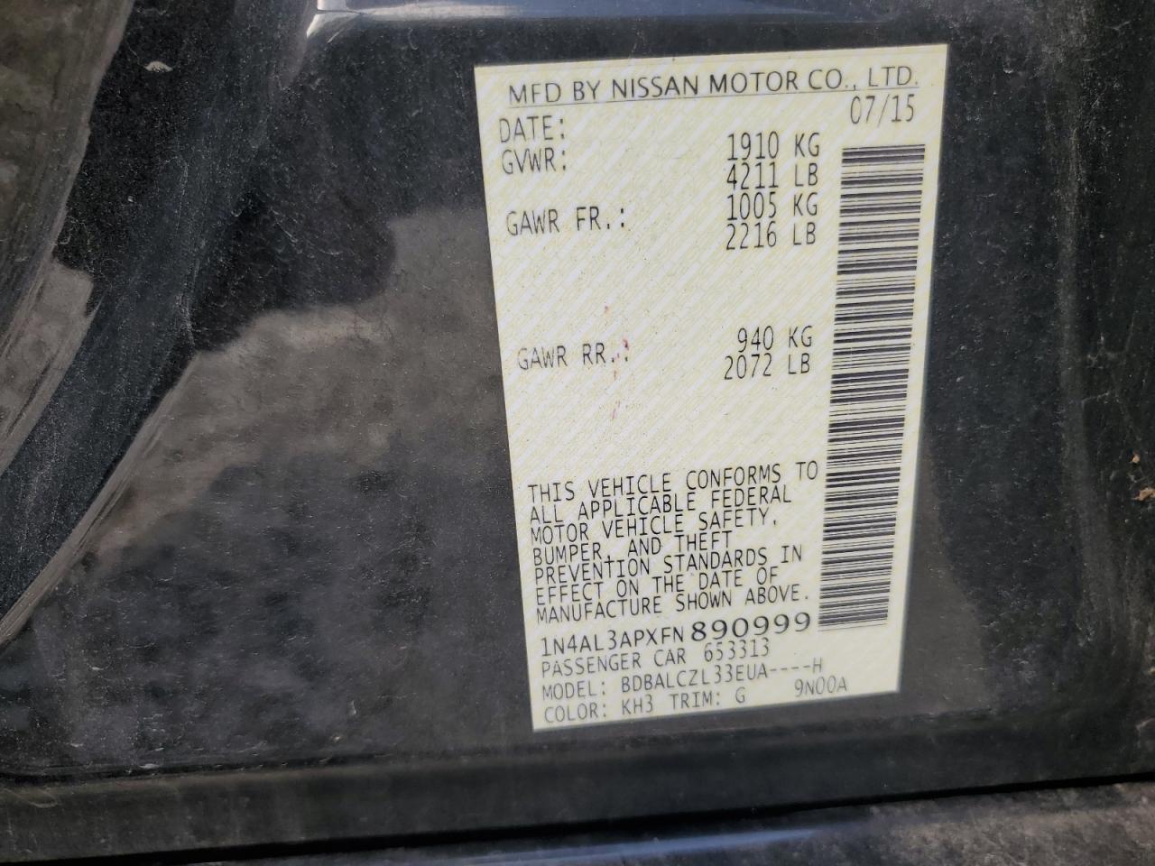 2015 NISSAN ALTIMA 2.5 из США