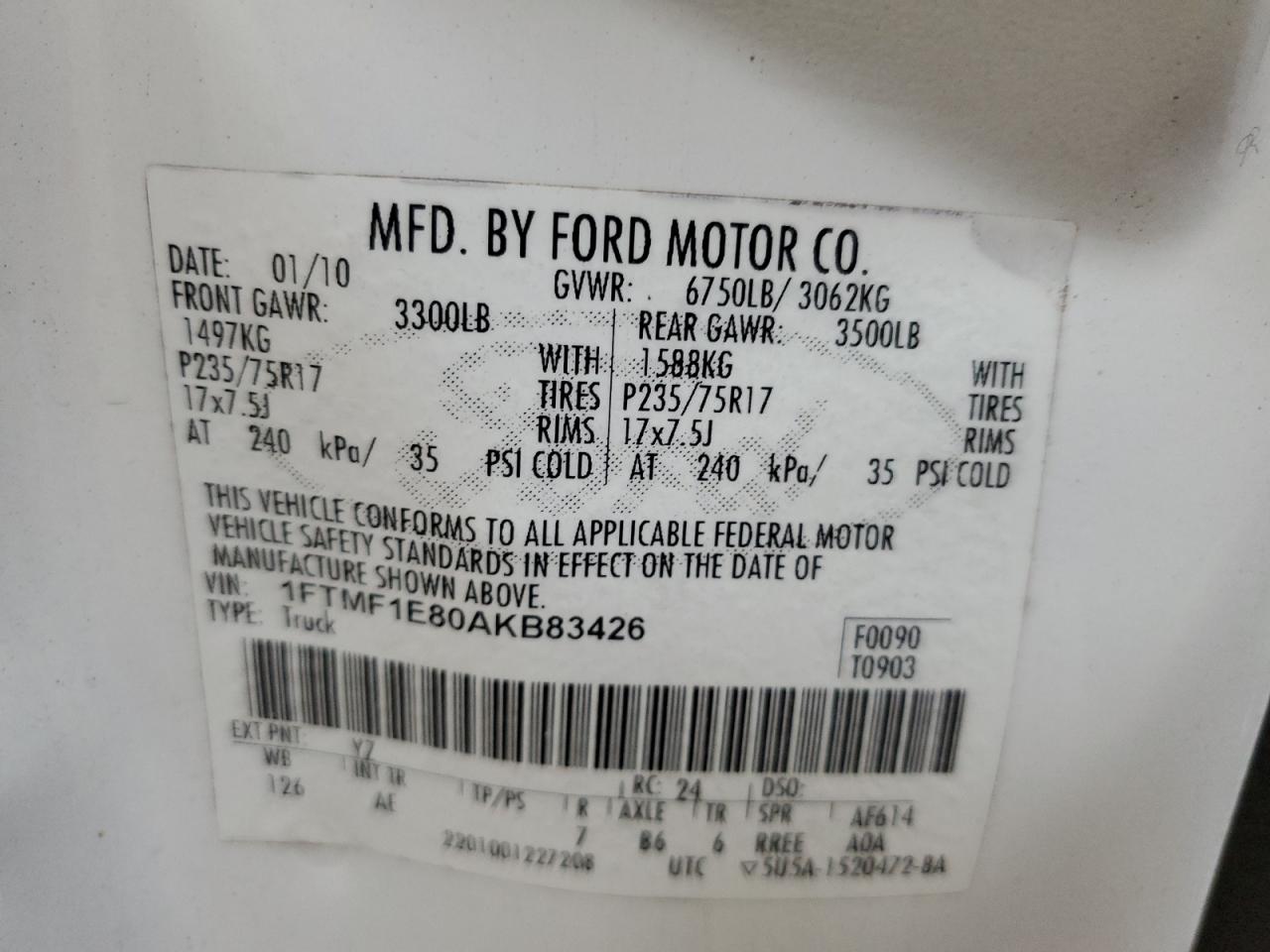 - ВИН: 1FTMF1E80AK******