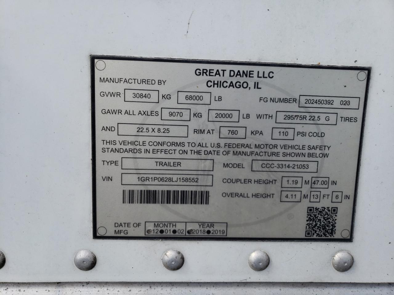 2020 GREAT DANE CCC-3314-21053 DRY VAN TRAILER из США