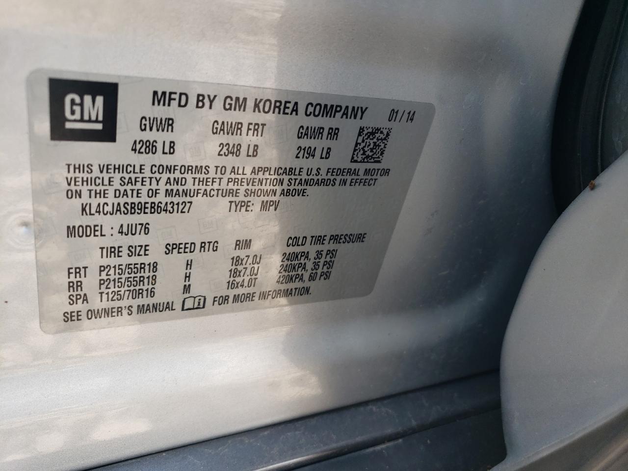- ВИН: KL4CJASB9EB******