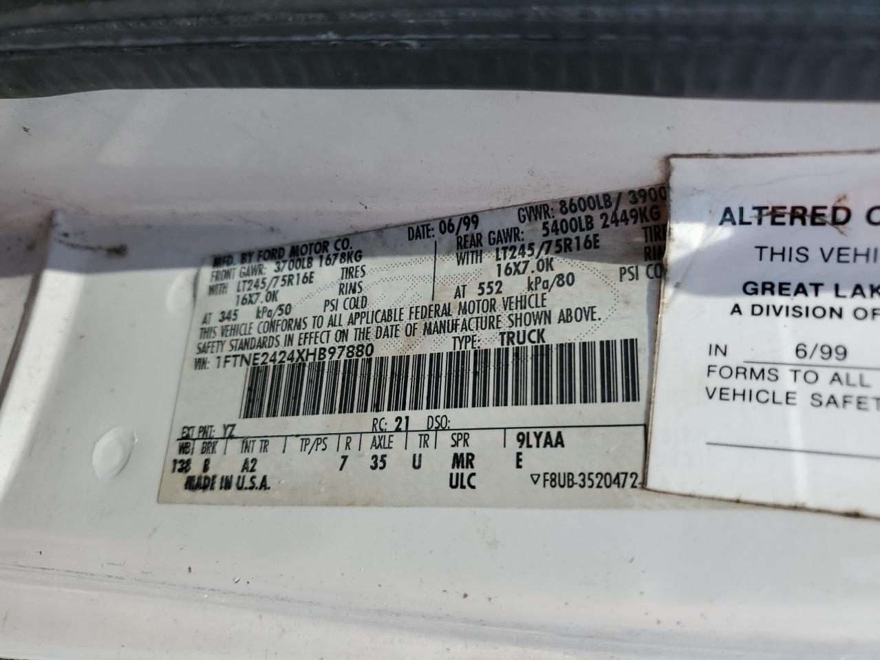 - ВИН: 1FTNE2424XH******