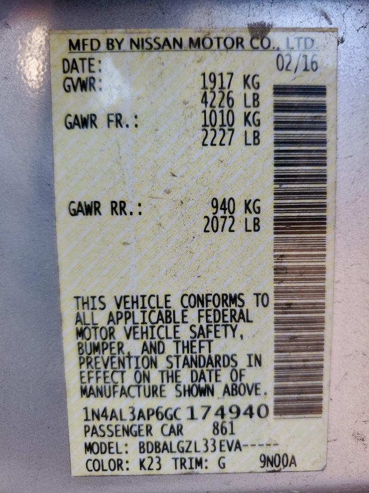 - ВИН: 1N4AL3AP6GC******