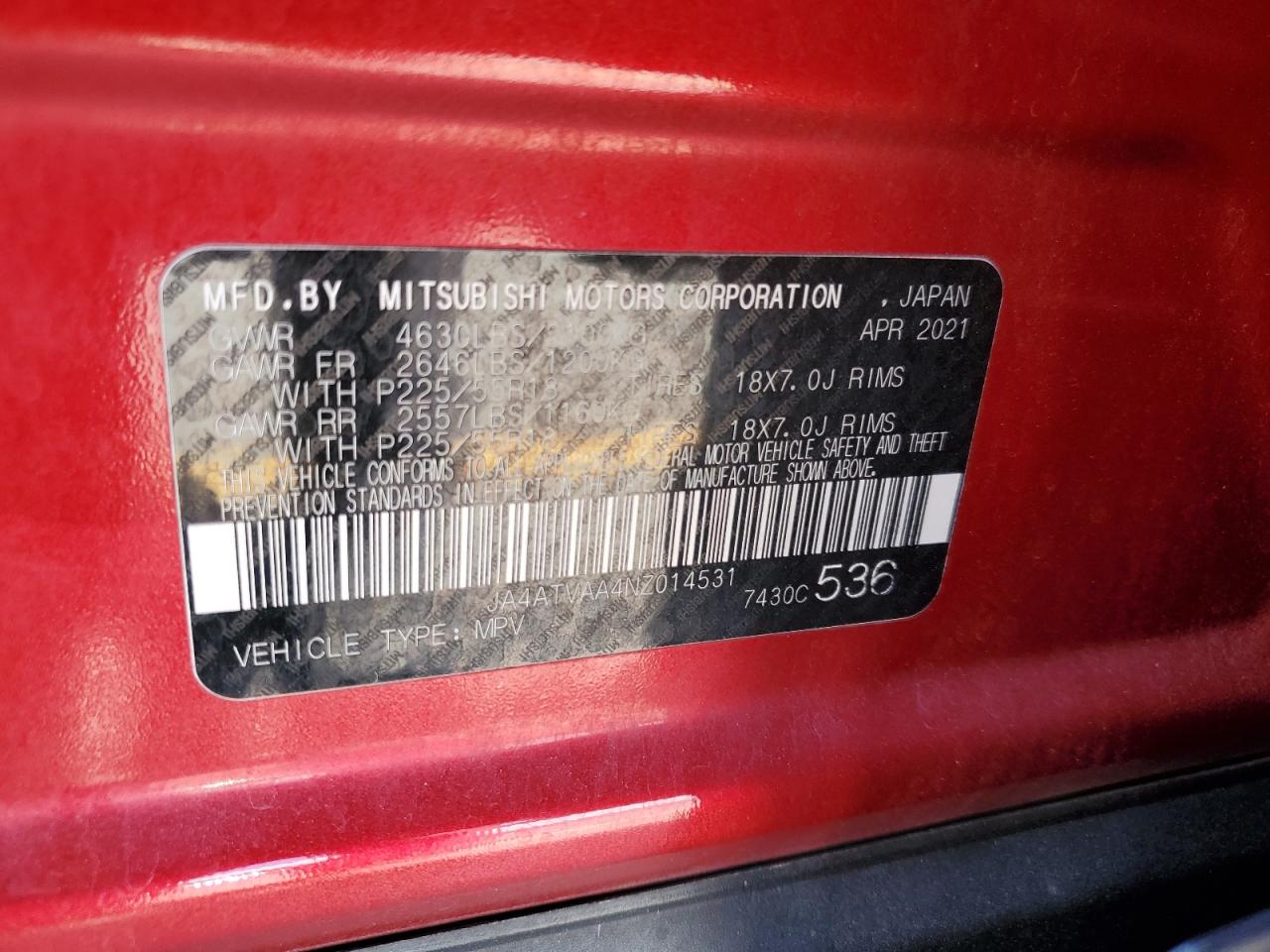 - ВИН: JA4ATVAA4NZ******