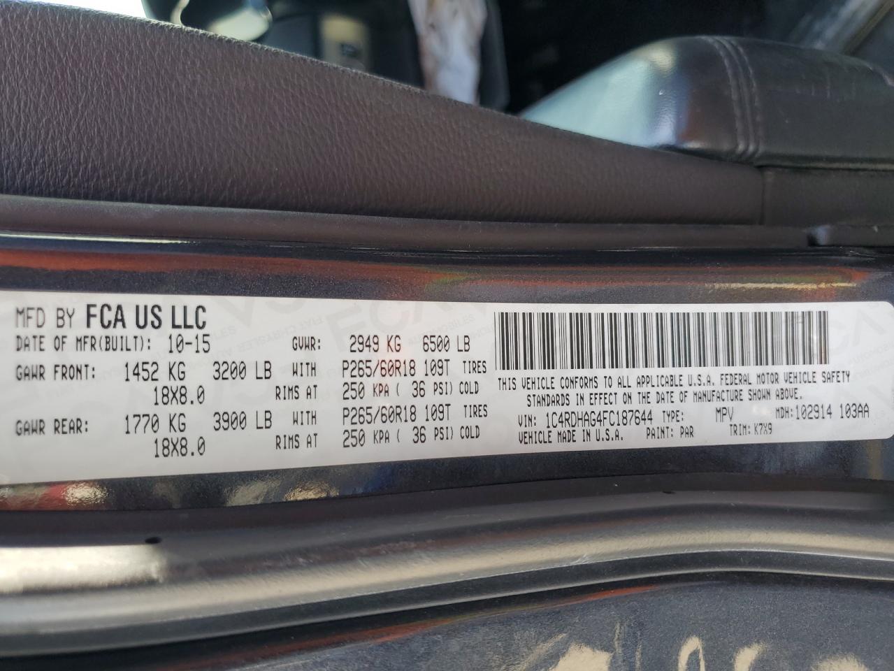 - ВИН: 1C4RDHAG4FC******
