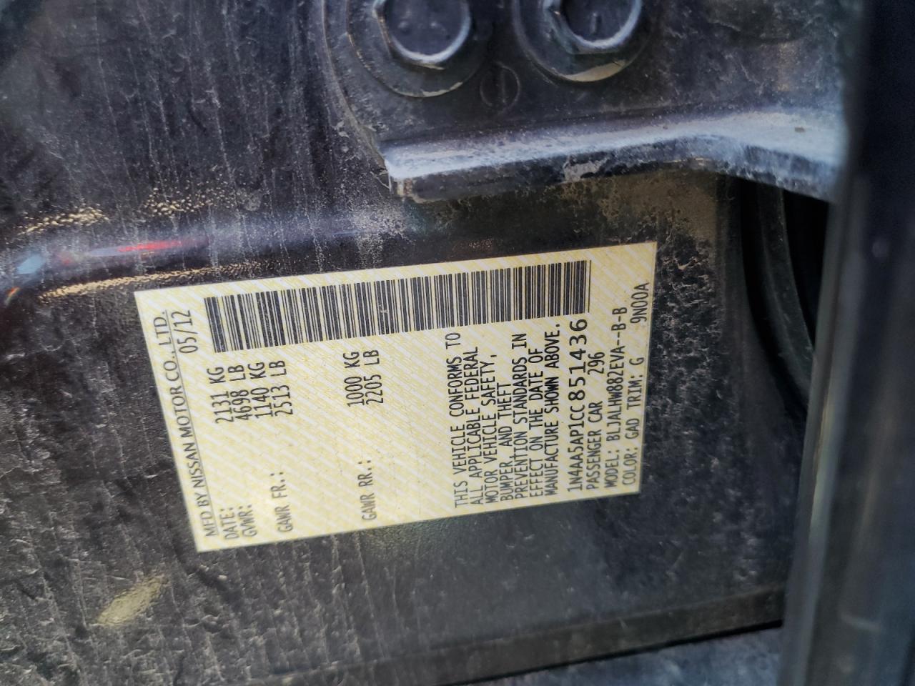 - ВИН: 1N4AA5AP1CC******