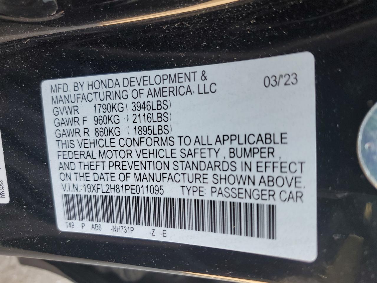 - ВИН: 19XFL2H81PE******