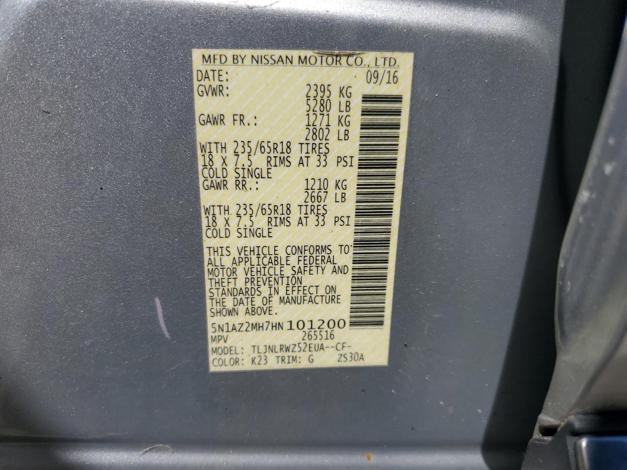 - ВИН: 5N1AZ2MH7HN******