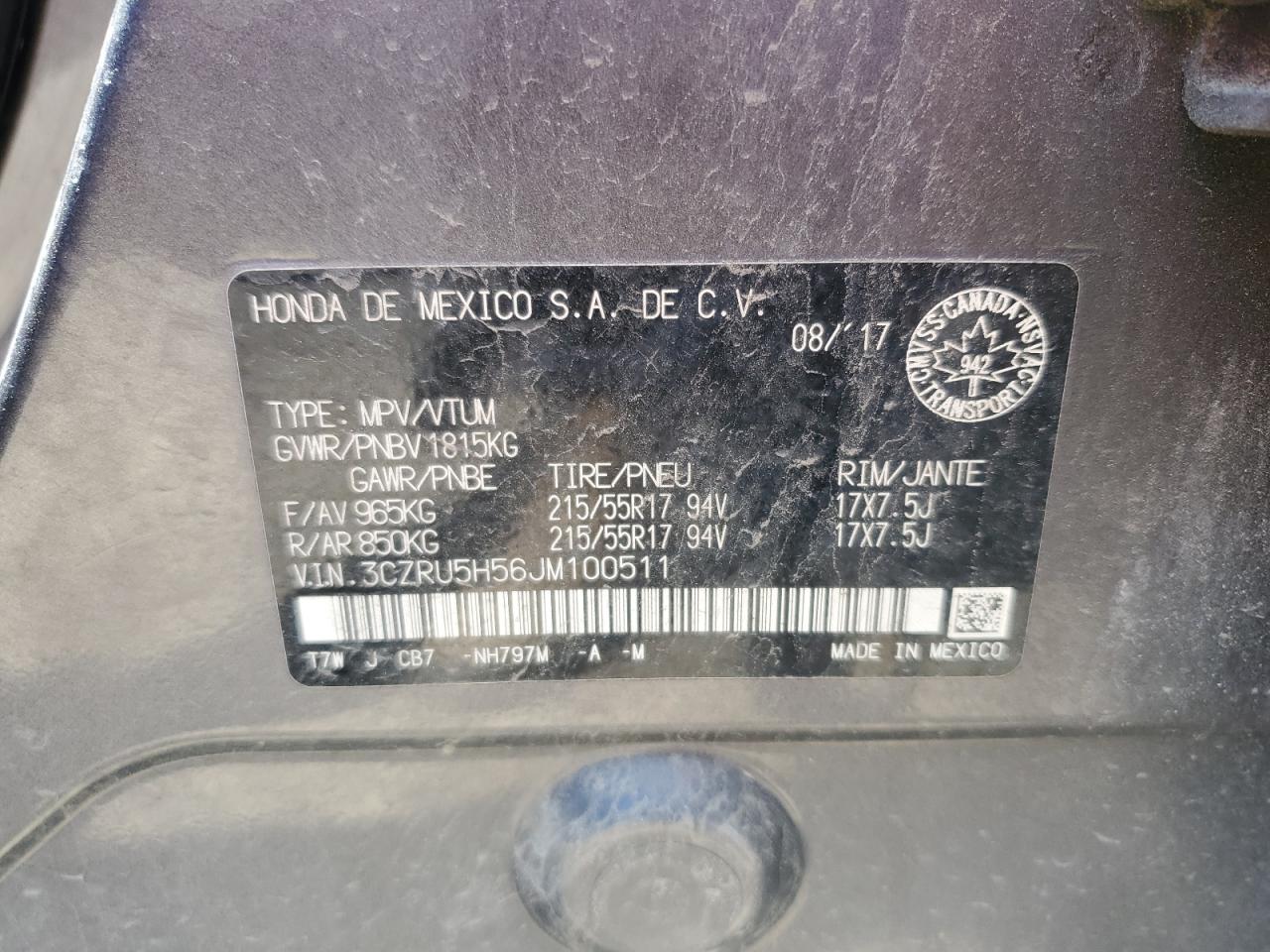 - ВИН: 3CZRU5H56JM******
