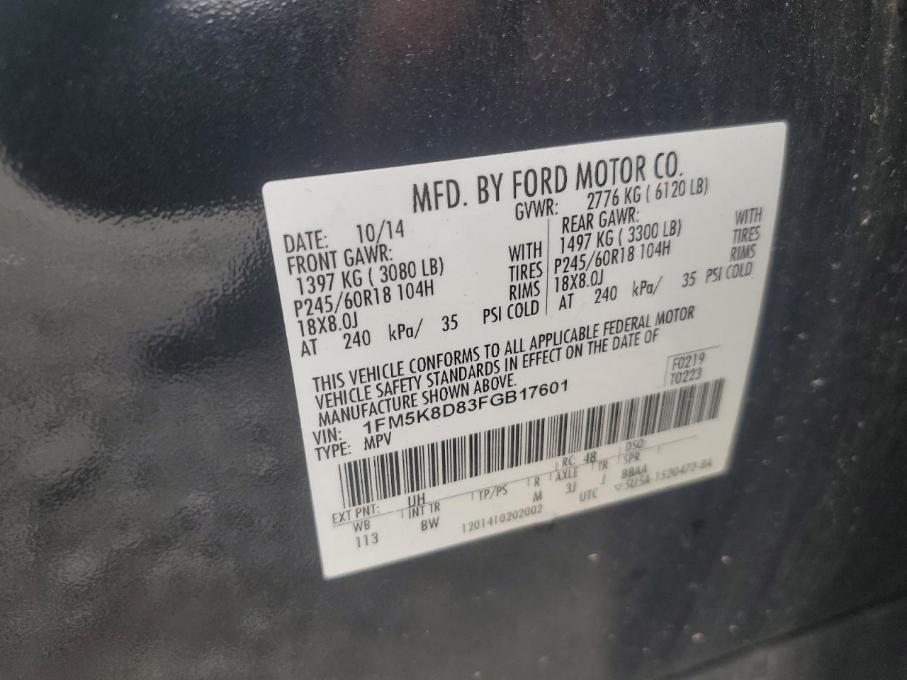- ВИН: 1FM5K8D83FG******