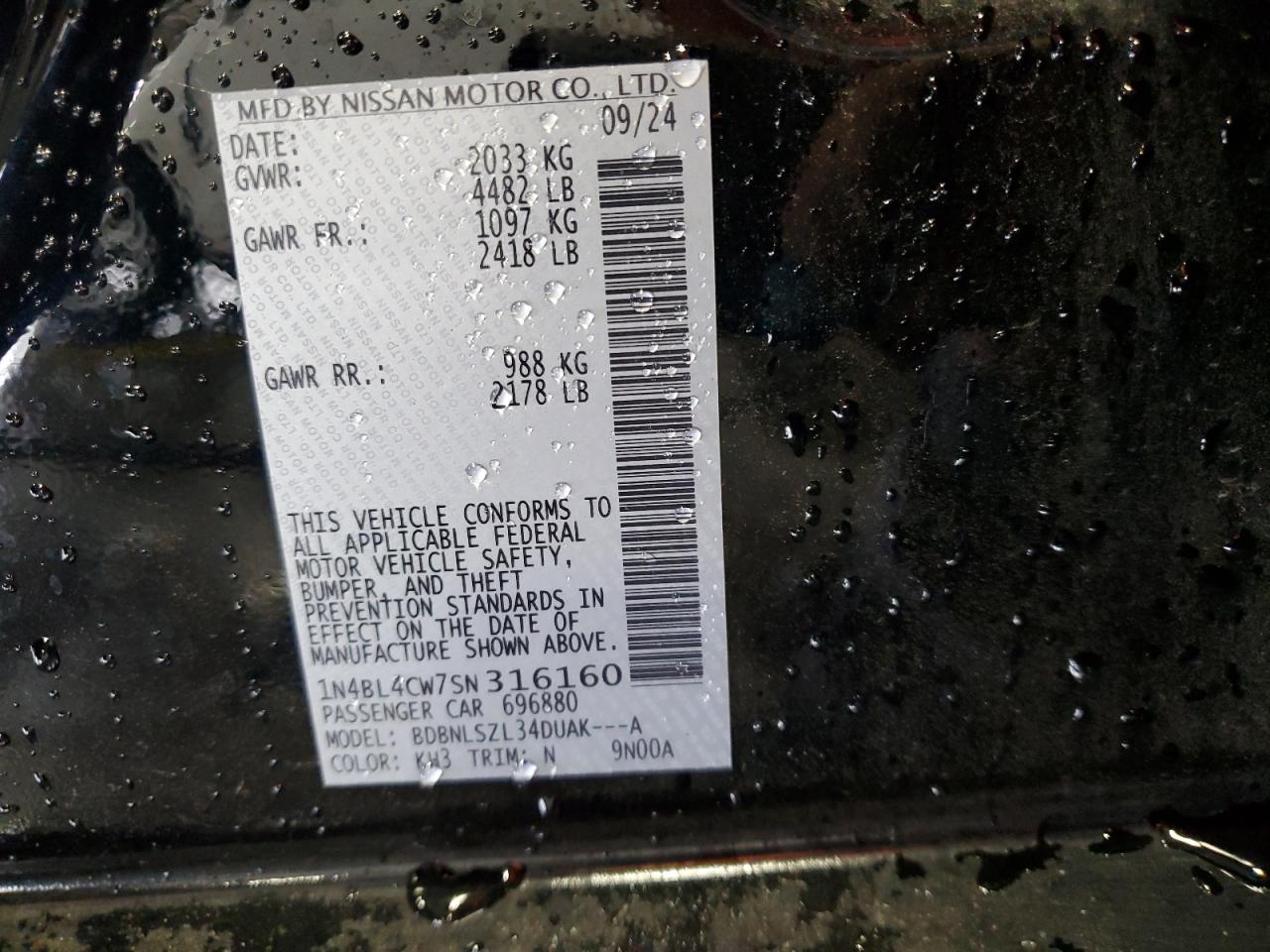 - ВИН: 1N4BL4CW7SN******