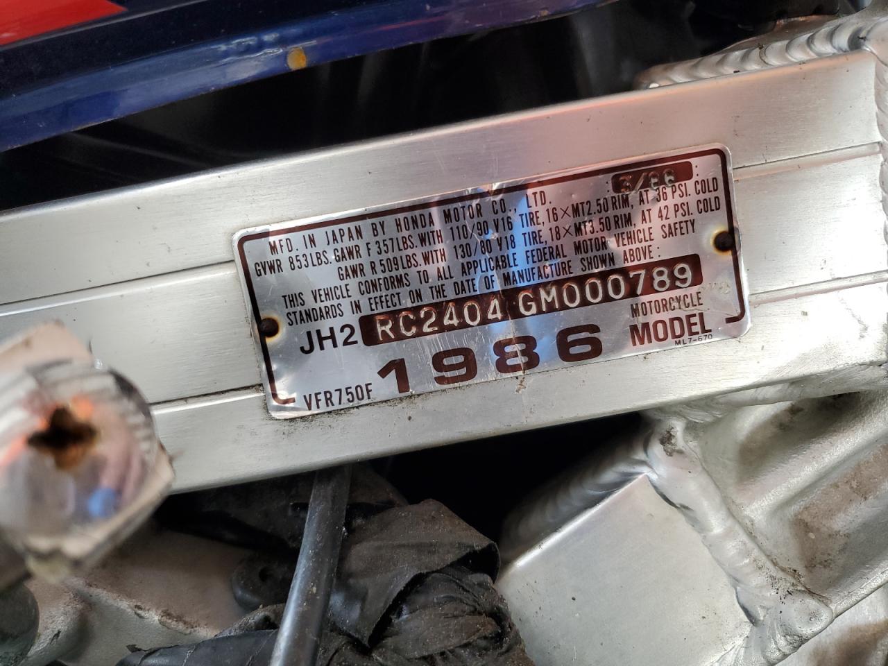 1986 HONDA VFR750 F из США