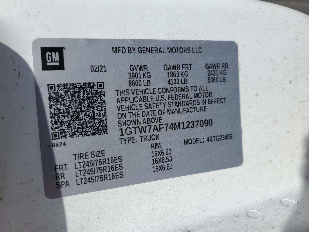 - ВИН: 1GTW7AF74M1******
