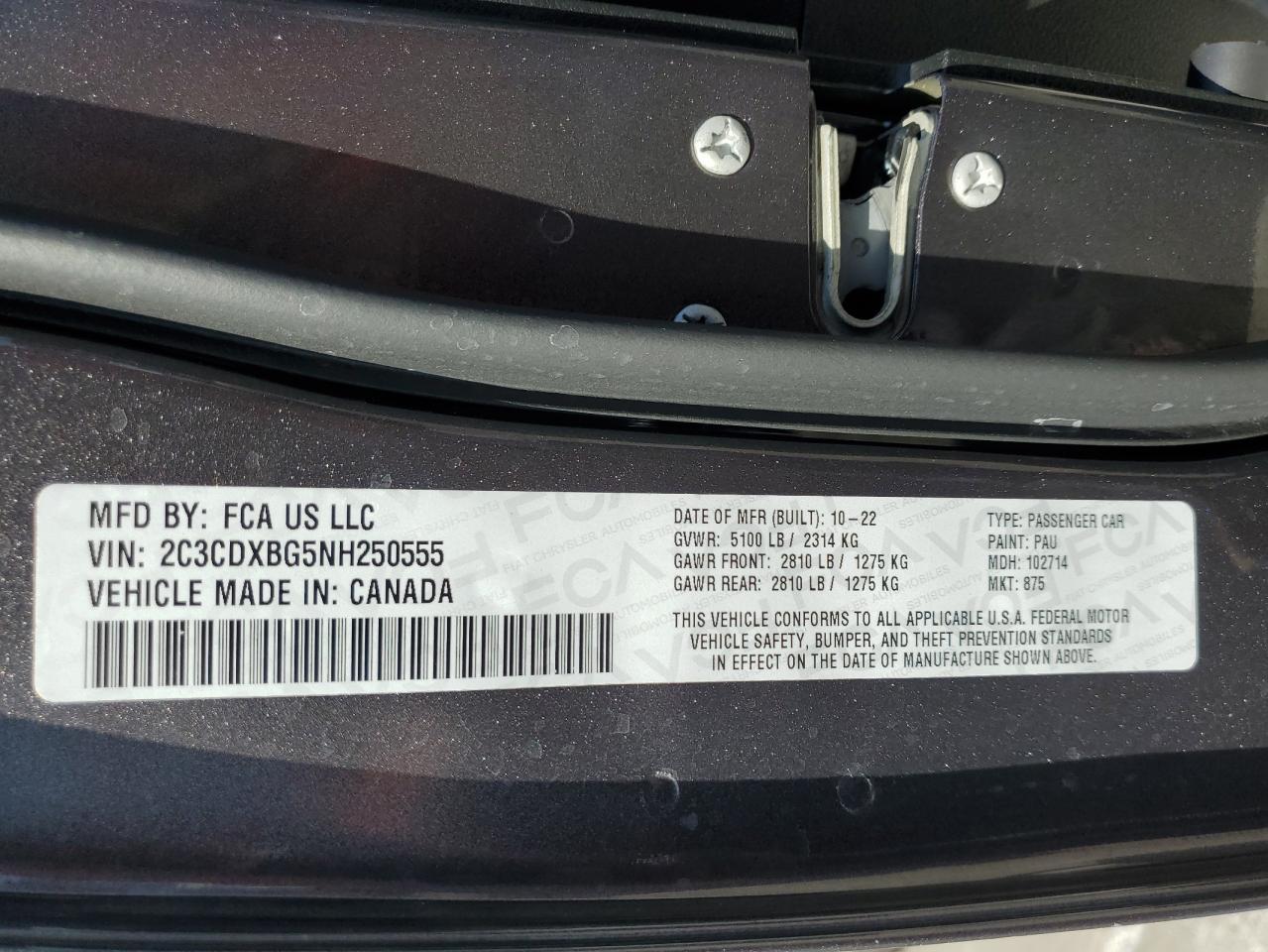 - ВИН: 2C3CDXBG5NH******