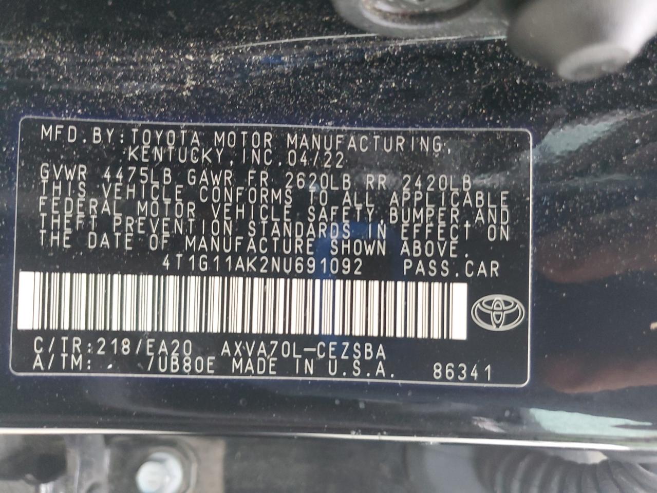 - ВИН: 4T1G11AK2NU******
