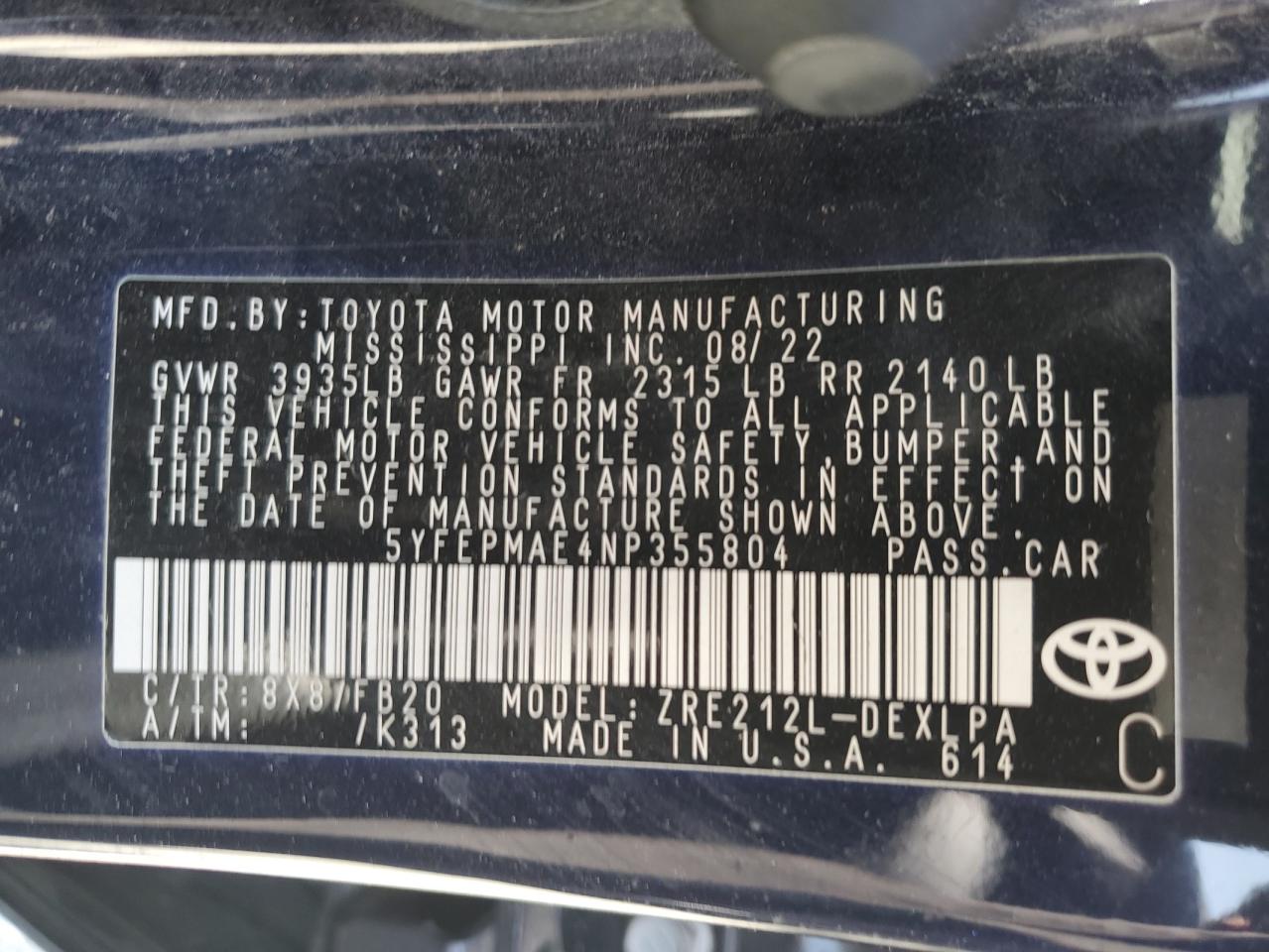 - ВИН: 5YFEPMAE4NP******