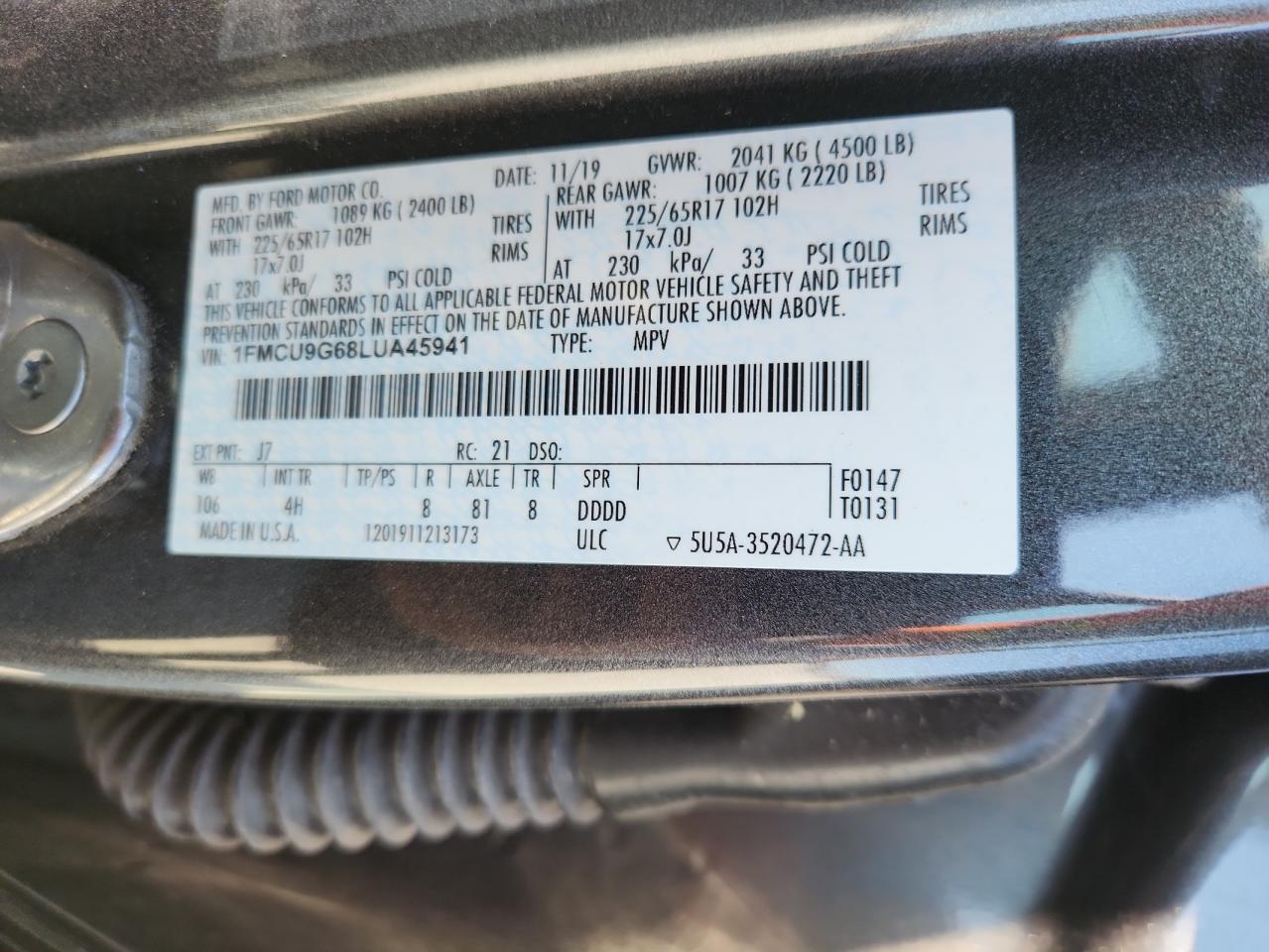- ВИН: 1FMCU9G68LU******