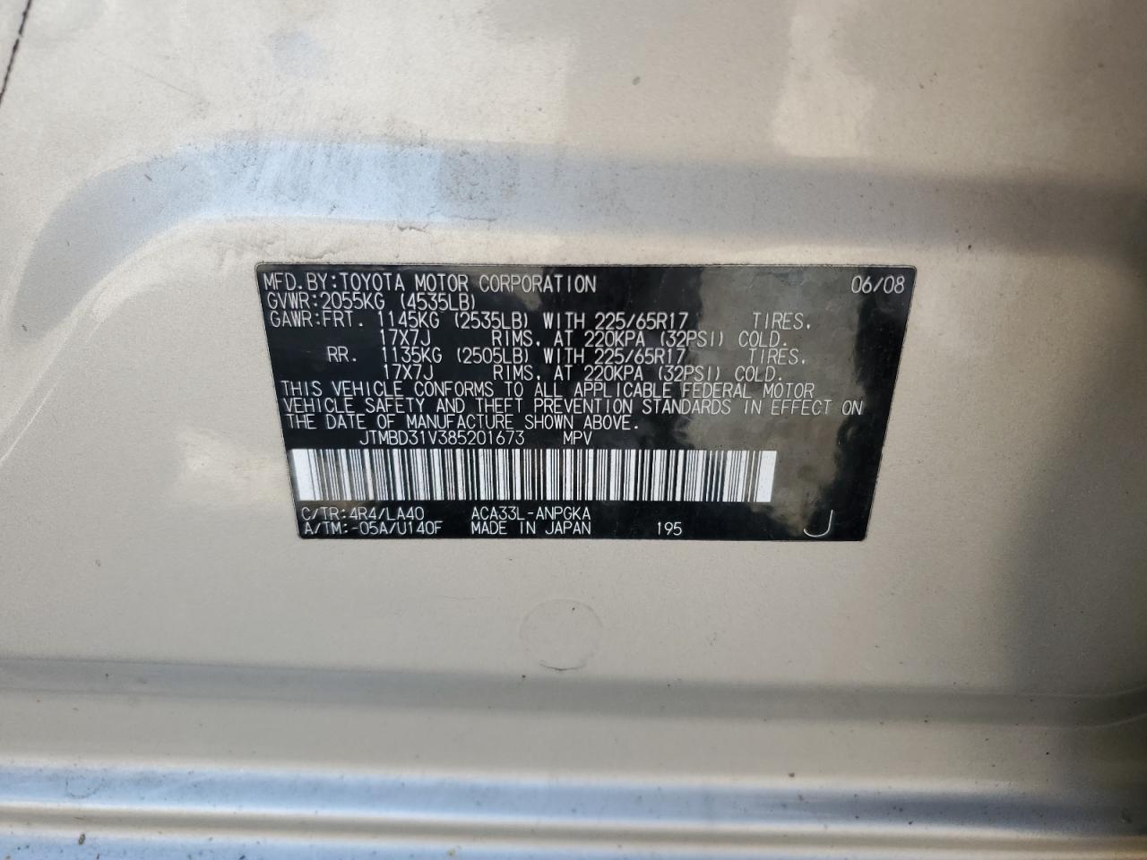 - ВИН: JTMBD31V385******
