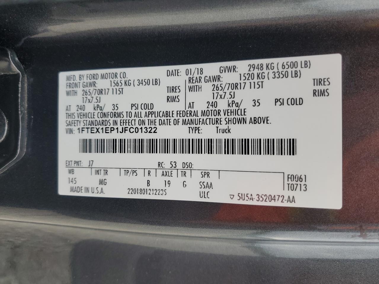 - ВИН: 1FTEX1EP1JF******