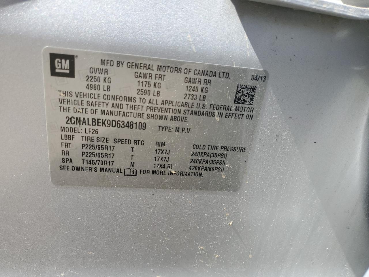 - ВИН: 2GNALBEK9D6******