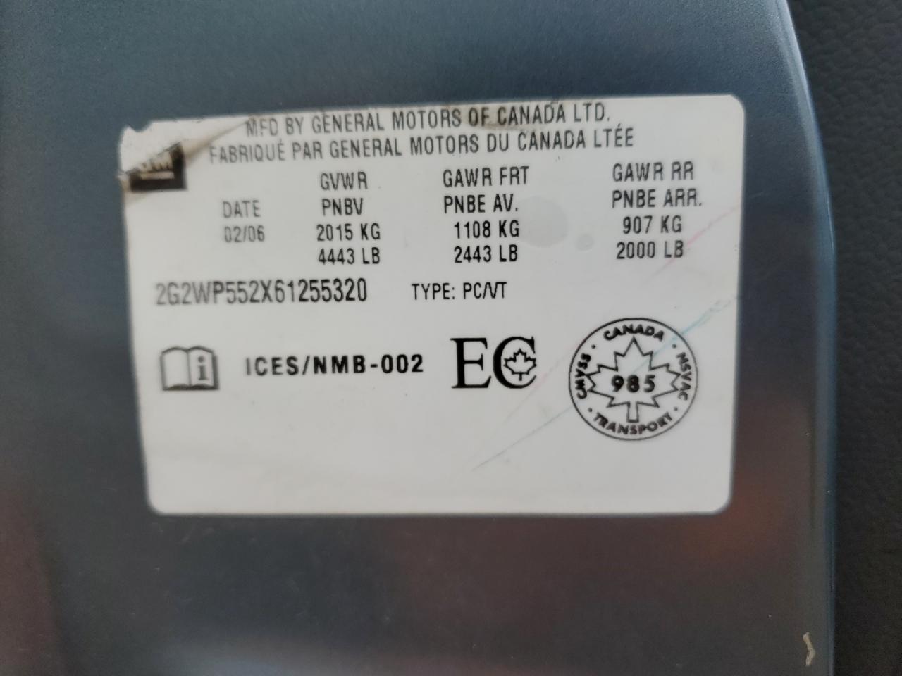 - ВИН: 2G2WP552X61******
